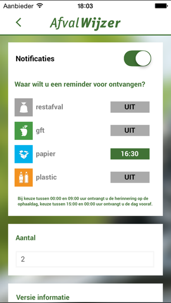Afvalwijzer werkt op iOS 12.1.2 of hoger. De huidige versie van de software is 3.99.937, en je kunt het alleen in het Nederlands krijgen.